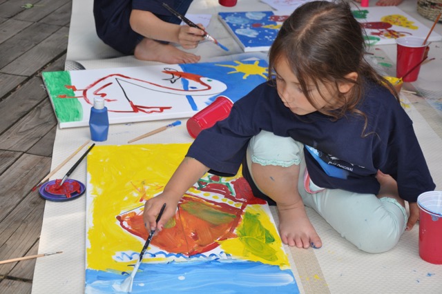 Aus den Zahlen eins bis vier entwickelten sich schließlich die mit Acryl auf Leinwand gemalten Bilder. Zum „Tanz der Rohrflöten“ von Tschaikowsky wurden mit größtem Eifer und Aufmerksamkeit die Pinsel getupft und geschwungen.