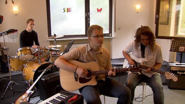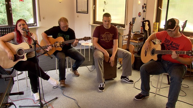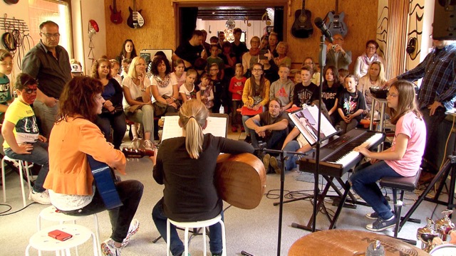 Für exotische Klänge sorgte die Ukulelegruppe unter der Leitung von Kerstin Jackson. Es spielten und sangen Stella Schlosser, Jette Göbel, Rosi Grün, Anton Kluge, Emilie Binz und Laila Dersuneli, rhythmisch unterstützt von Schlagzeuglehrer Benni Klein am Cajon. Marina Schmidt und Lara Acklin trafen sich spontan zu einem Duo mit Piano und Gitarre. Niklas Kramm zupfte, begleitet von Gitarrenlehrer Michael Diehl die Gavotte von Francois de Campion.
