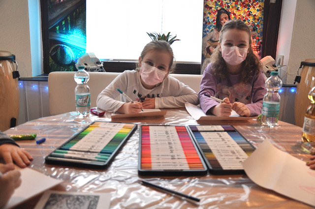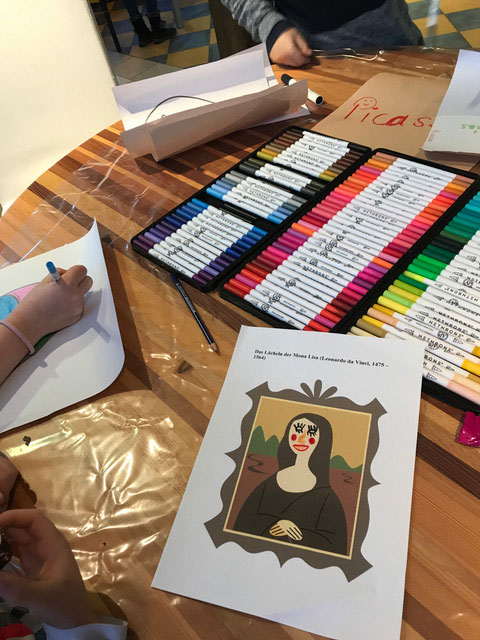 Abschließend war bei einem Doppelgesicht im Stil von Picasso das Abstrakte gefragt und die Farbstifte tanzten wieder zur Musik.