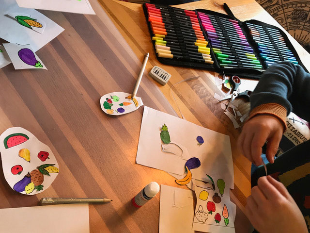 Ganz à la Arcimboldo, dem italienischen Maler der Spätrenaissance wurden aus einer Vorlage Gemüse und Früchte ausgeschnitten und zu lustigen und phantasievollen Porträts zusammengeklebt. Nach dem spanischen Barockmaler Diego Velázquez konnte im “Freestyle“ die berühmte Prinzessin Margarita gemalt werden.